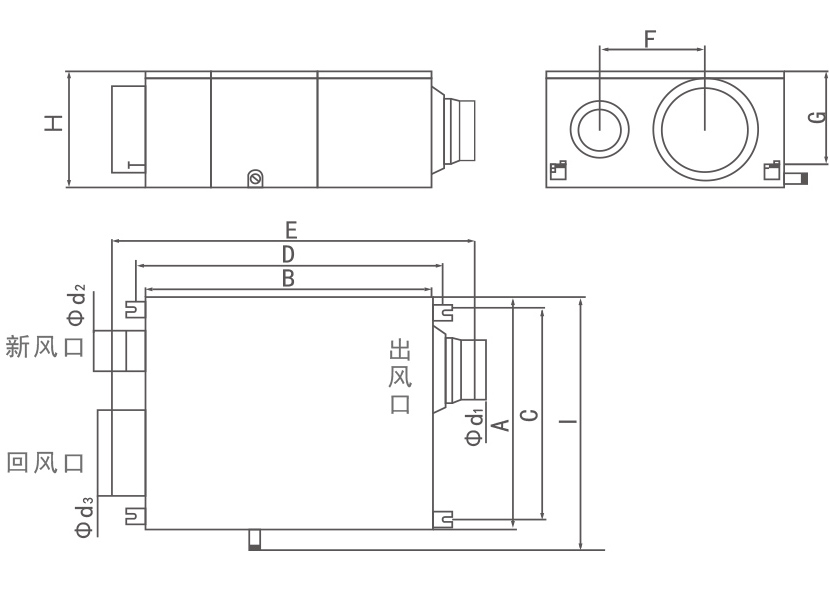 型号 A B C D E F G H I Φd1 Φd2 Φd3
